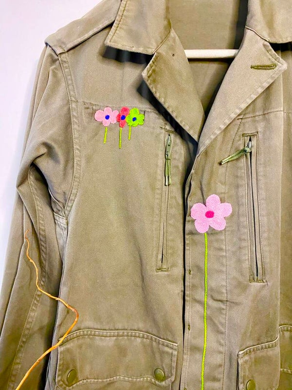 Veste Hana Kotoba, brodée à la main, surplus militaire.